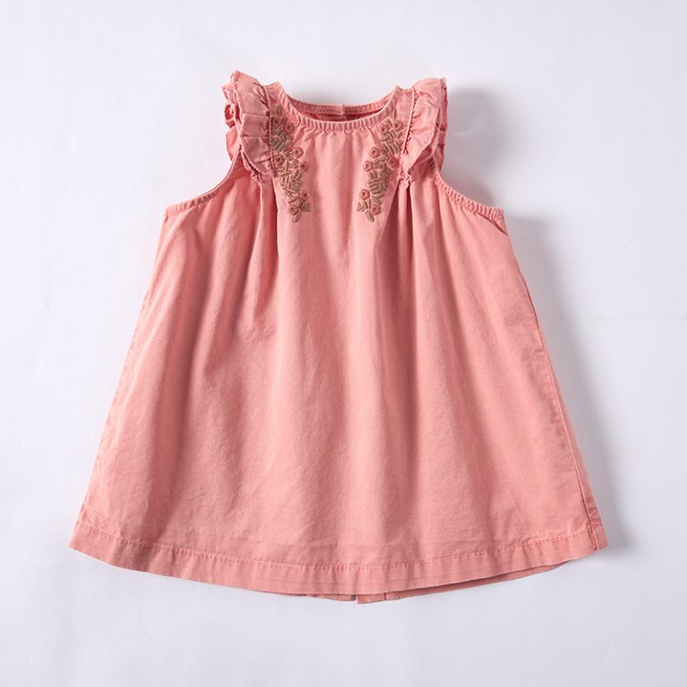 Pink Sappan Madder Pomegranate Peel Natural Plant Dyeing Floral Embroidered Ruffle Trim Girl Dress