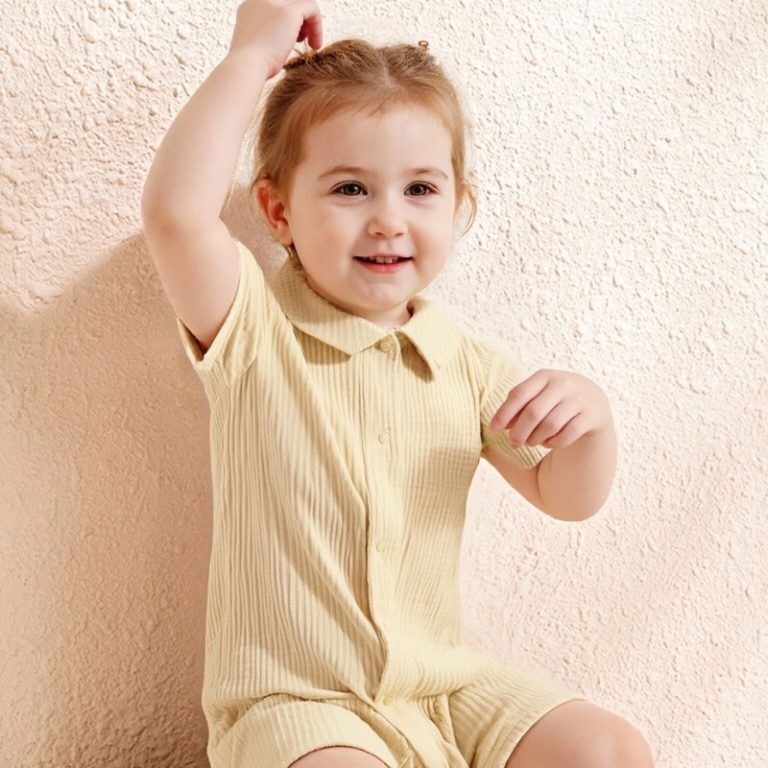 Light Yellow Sappan Madder Pomegranate Peel Plant Dyeing Natural Dyeing Cotton Gauze Shortall Baby Jumpsuits
