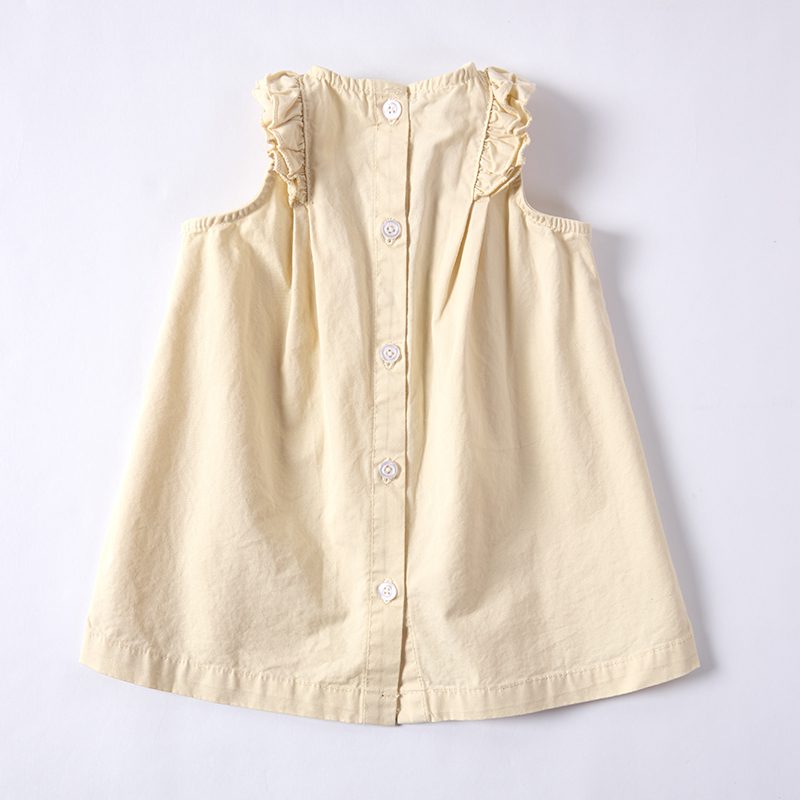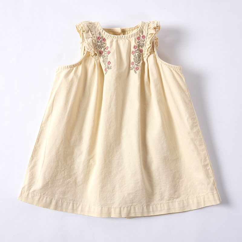 Light Yellow Sappan Madder Pomegranate Peel Natural Plant Dyeing Floral Embroidered Ruffle Trim Girl Dress